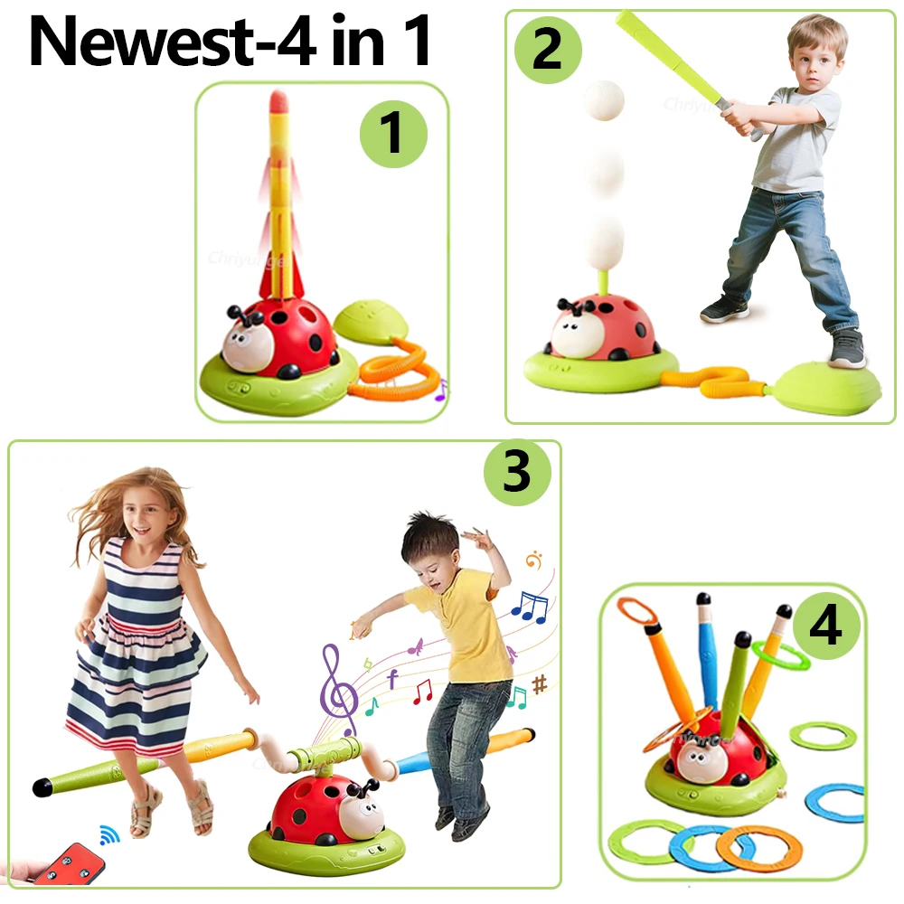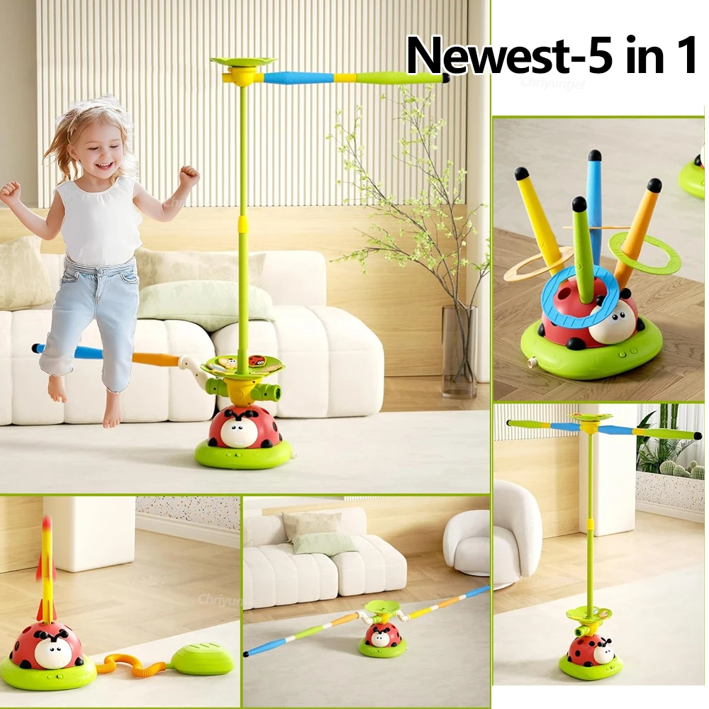 1. Funny 3 In 1 Ladybird Fun Toys: Look our Chriyungel Cute Ladybird Sports & Outdoors Indoors Toys which can transform into 3 different kids games. Game 1: Rocket launcher for kids toy;  Game2: Spinning Pole-Hopping Game, skip it for kids jumping;Game3 : Spinning Ring Toss Game. Buy 1 toy amount to 3 toys.